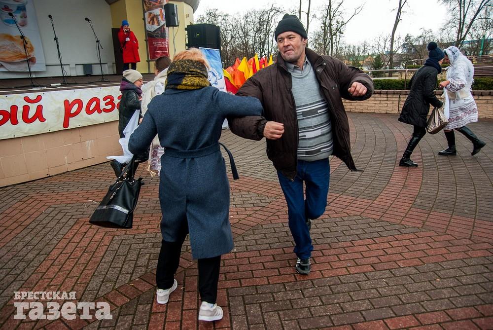 В Бресте веселые проводы зимы, по традиции, проходят, в городском парке культуры и отдыха. Правда, в этом году в наших краях климатическая зима так и не наступила. Вот и на Масленицу снег, выпавший с утра, растаял.