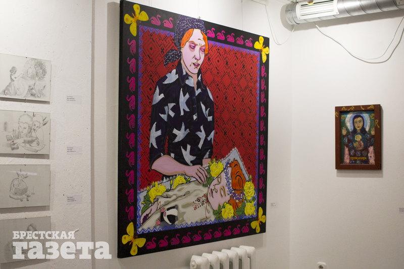 Единственная представительница Брестской области — художница Валентина Шохалевич из Кобрина — представила на выставке двух Мадонн. «Когда я собирала проект, я понимала, что мне будет сложно обойти архетип Мадонны, если я говорю о материнстве, — рассказала Михальчик. — Хотелось избежать клише. Мне показалось, что Мадонны Валентины подходят идеально. Они очень трогательные, человечные».