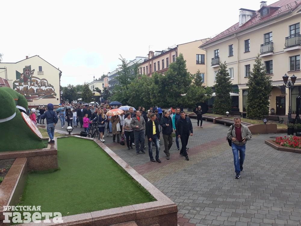 Днем 7 июля в Бресте прошли традиционные кормление голубей и шествие по городу в знак протеста против строительства под Брестом аккумуляторного завода.