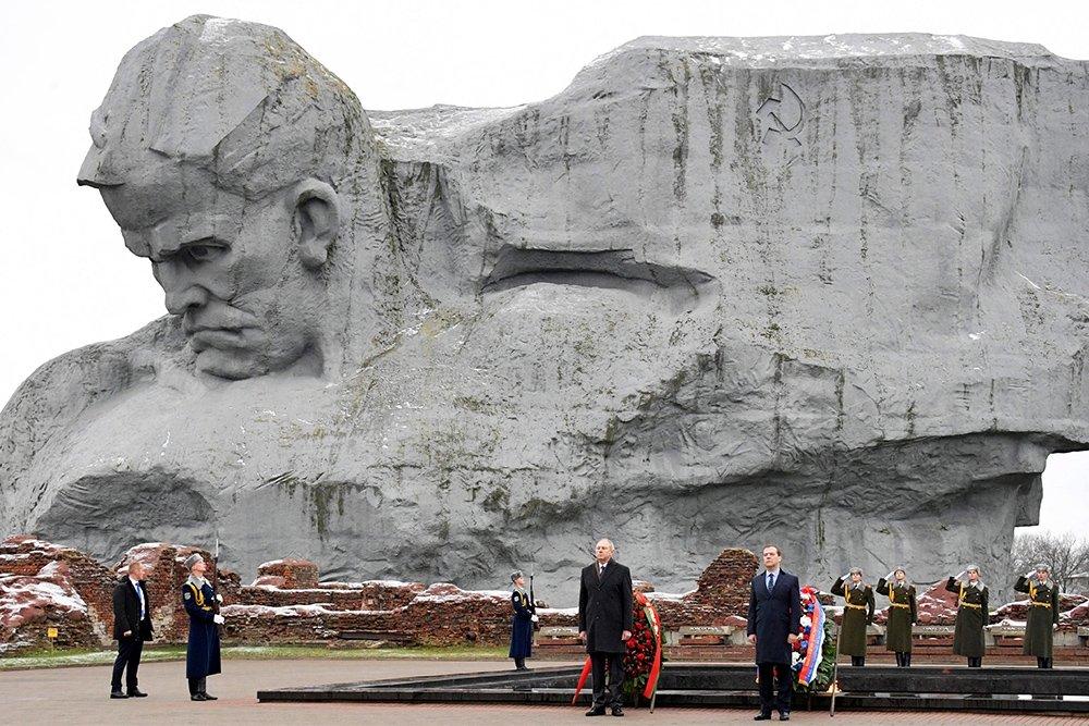Вместе со своим белорусским коллегой Сергеем Румасом Медведев почтил память погибших защитников крепости — премьеры возложили венки к Вечному огню.