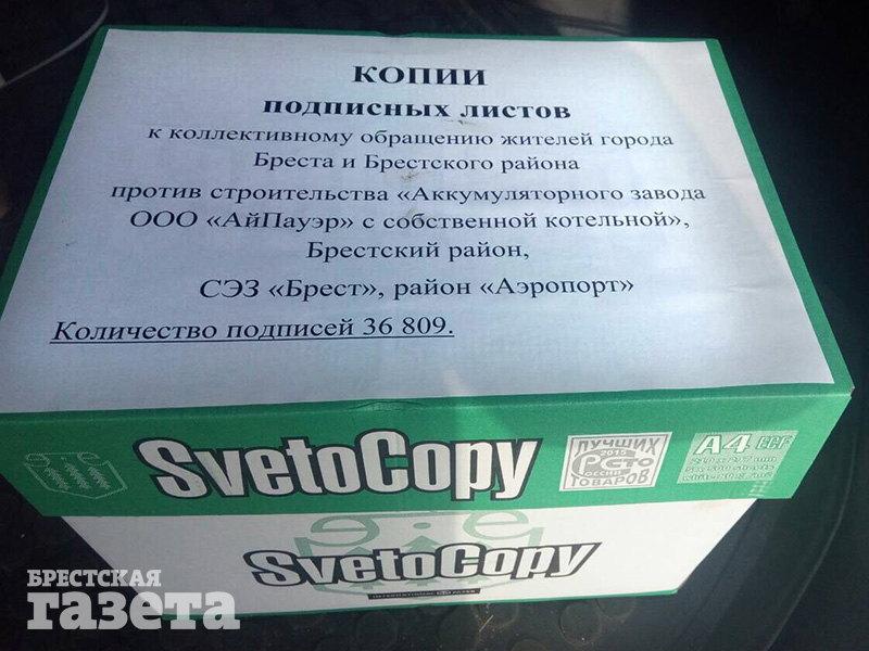 «Сегодня собранные против строительства аккумуляторного завода подписи передали в Администрацию президента в Минске. Всего собрали 36 809 подписей. В администрацию передали копии подписных листов и обращение на 14 страницах», — сообщил «БГ» 22 февраля юрист и правозащитник Роман Кисляк.