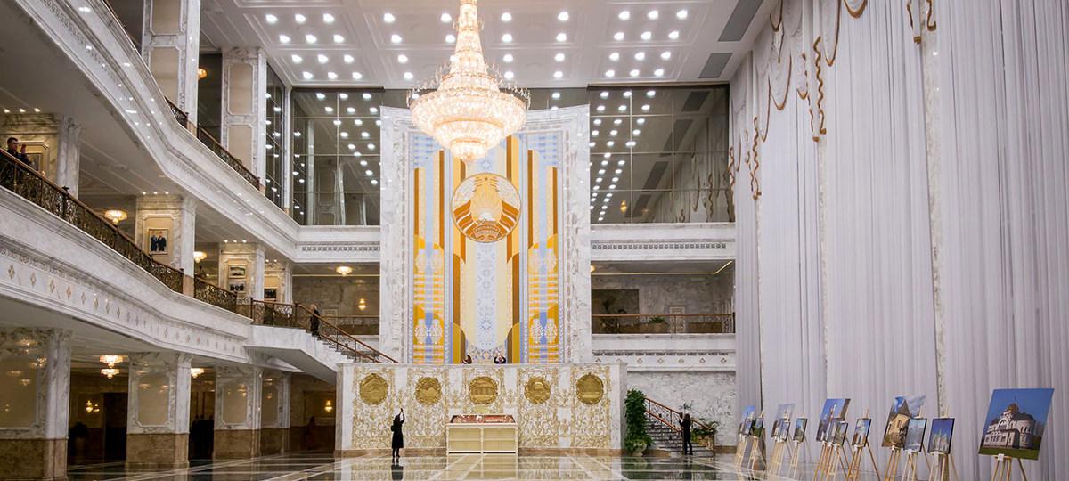 Во Дворце 23 грандиозные люстры и более 150 бра. Они изготовлены на лидском ЗАО «Каскад».