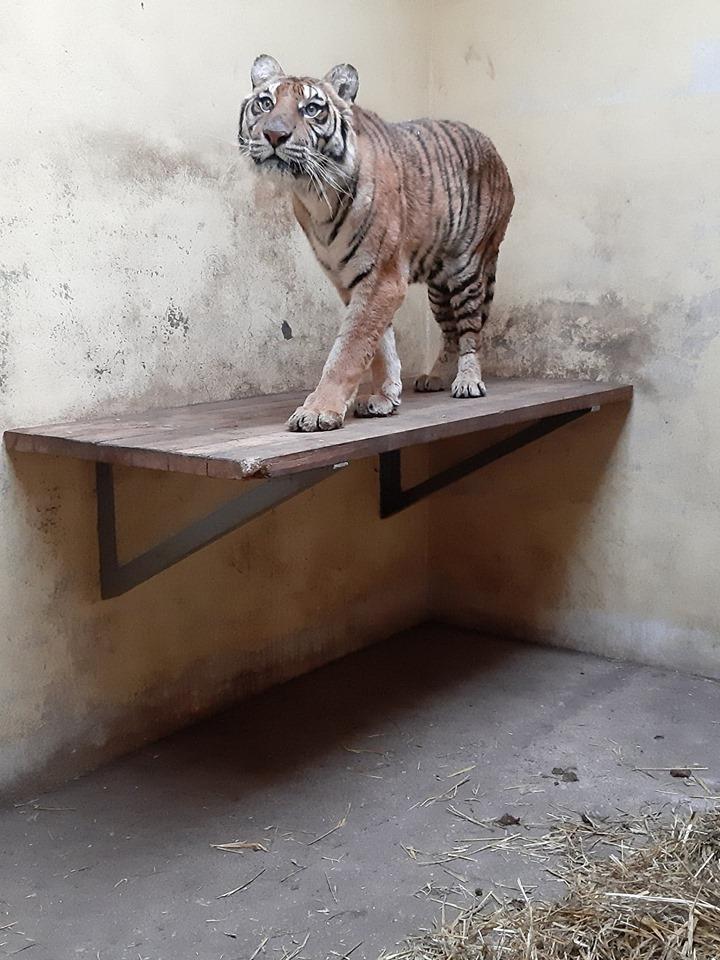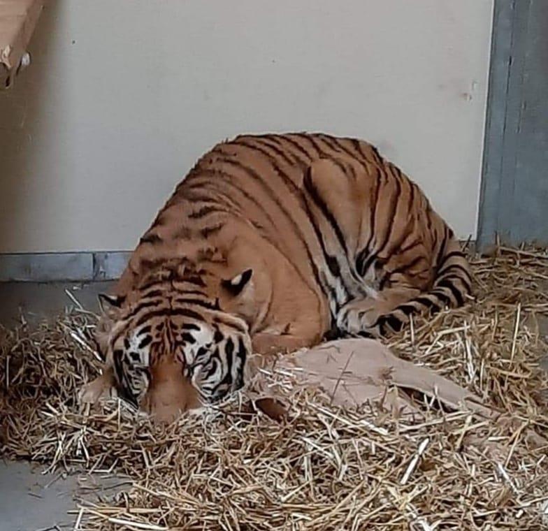 «Вот «неумершая» тигрица, из последнего ящика, которая не подавала признаков жизни. Когда наши сотрудники с огромными усилиями вытащили все ящики (каждый весом примерно 400 кг) и мы добрались до последнего, оказалось, что животное все еще живо! Отдохнула, пьет, ест, медленно, но ей становится лучше. Мы даем им имена, чтобы у животных было желание вернуться к жизни. Софти – потому что она ходит очень осторожно, и она такая маленькая, хотя характер уже показывает», — сообщил 1 ноября зоопарк в Познани, где находится большинство спасенных животных.