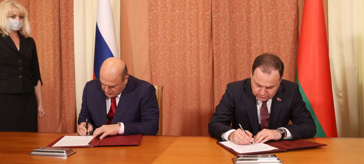 В пятницу 10 сентября премьер-министр Беларуси Роман Головченко и премьер-министр России Михаил Мишустин подписали постановление Совета Министров Союзного государства об основных направлениях реализации положений договора о создании Союзного государства на 2021-2023 годы. Кроме того, главы правительств подписали совместное заявление о текущем развитии и дальнейших шагах по углублению интеграционных процессов в рамках Союзного государства. Об этом сообщает БелТА.