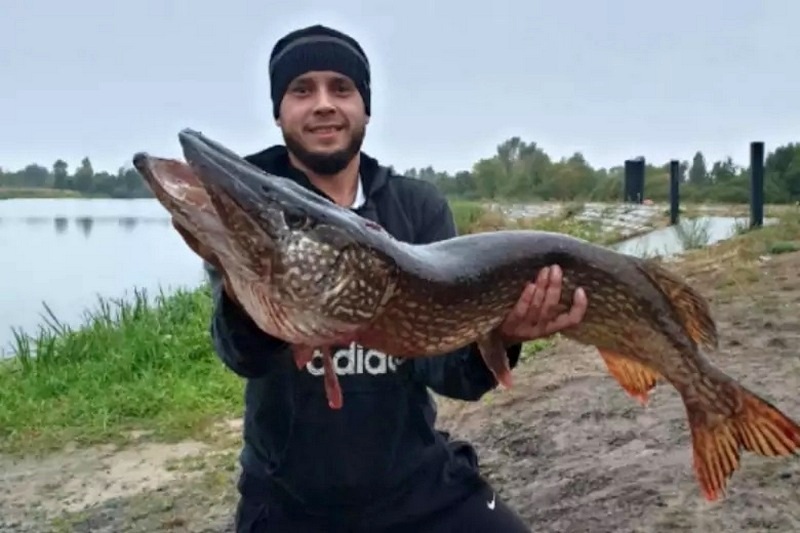 Фотофакт. В Пинском районе рыбак вытянул из подводной ямы метровую щуку