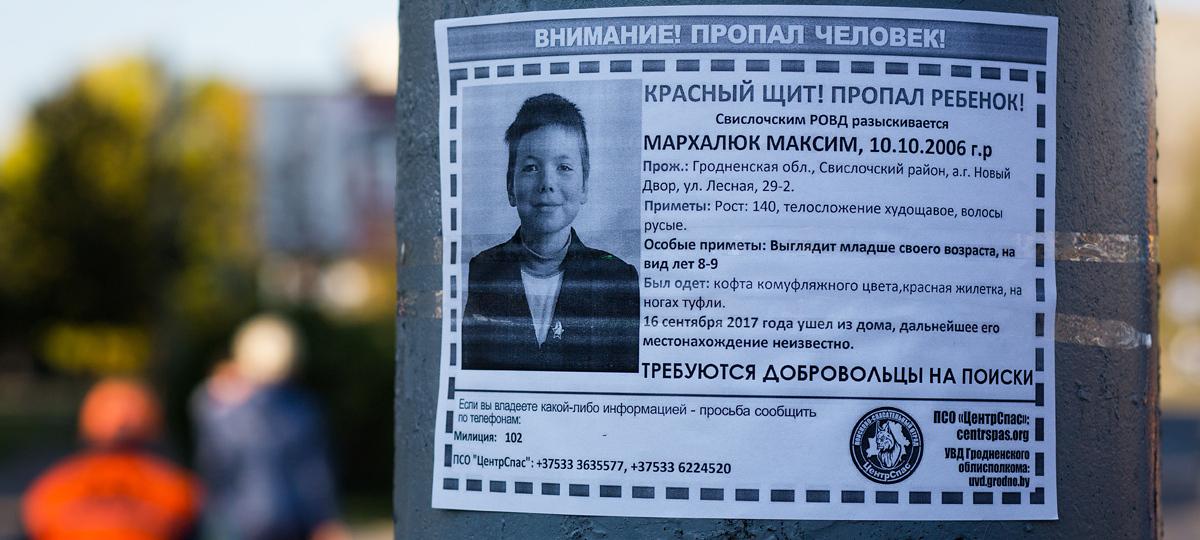 К сожалению, «польский след» Максима не подтвердился. Как ранее писала «БГ», в польскую полицию обратился дальнобойщик, который сообщил, что в спальном отсеке его фуры прятался, а потом сбежал мальчик. Это произошло в 100 км от белорусско-польской границы. Однако водитель позже не опознал Максима Мархалюка по фото, заявив, что подвозил другого мальчика.