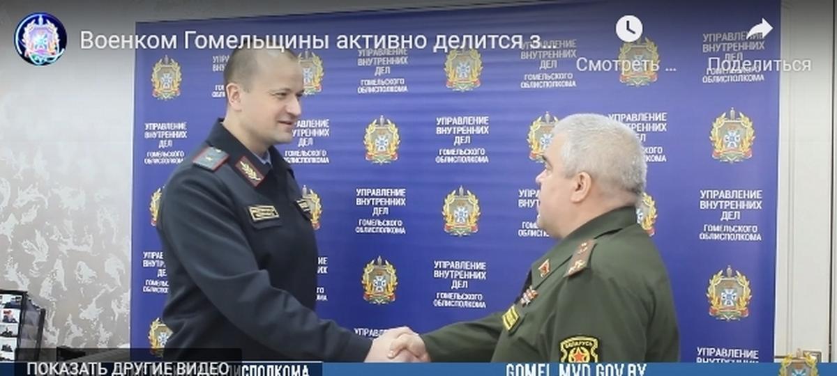 Военный комиссар Гомельской области Андрей Кривоносов, который во время второго дня Всебелорусского народного собрания пожал руку Александру Лукашенко, чтобы получить от него «заряд энергии» и решимости, сначала поделился зарядом со своими подчиненными, а затем – с милиционерами. Он приехал в УВД Гомельского облисполкома, где военкома встретили начальник управления внутренних дел генерал-майор милиции Александр Васильев, его заместители, начальники отделов и служб.