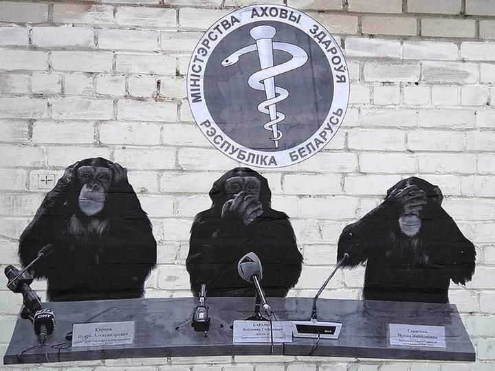 Сатирический стрит-арт про Минздрав исчез со стены здания в центре Бреста через несколько часов после того, как его фото разлетелось по телеграм-каналам, передает Tut.by.