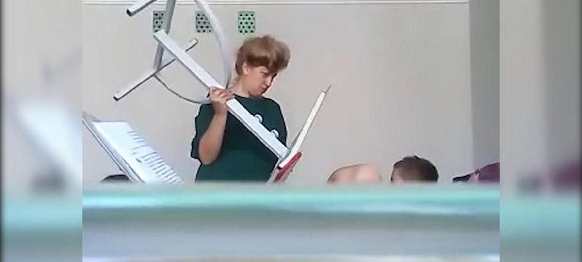 На записи видно и слышно, как женщина занесла над головой ученика парту, крича при этом: «Тресну, а потом посмотрим! Я пойду в тюрьму, а тебе п***ц будет!»
