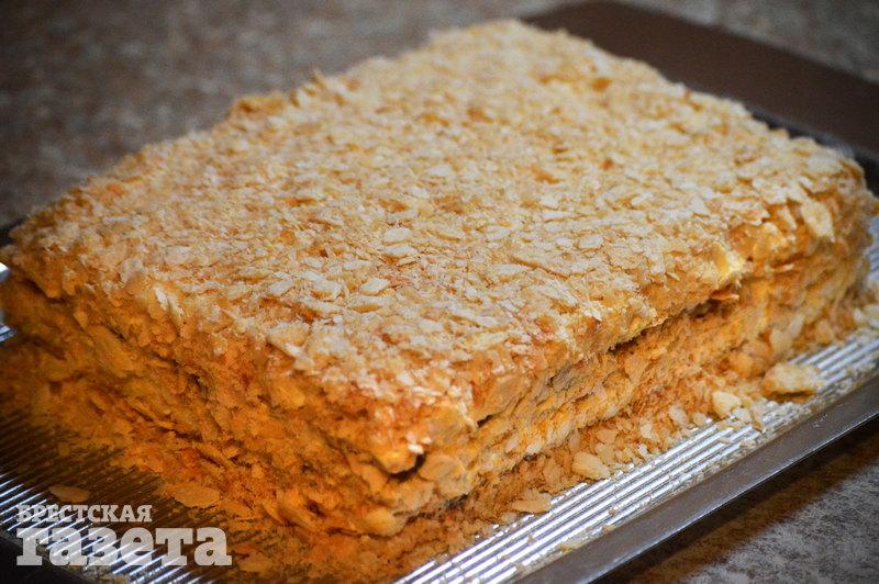 Оставшиеся коржи измельчите руками и присыпьте пирог сверху и по бокам.