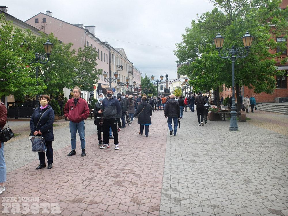 Несмотря на не очень хорошую погоду, жители Бреста собрались в последний весенний день на улице Советской, чтобы поставить свою подпись в поддержку Светланы Тихановской. Очередь растянулась от кинотеатра «Беларусь» до торгового центра «Дидас Персия». До этого огромные очереди выстраивались в Минске, Барановичах, Гродно и других городах.