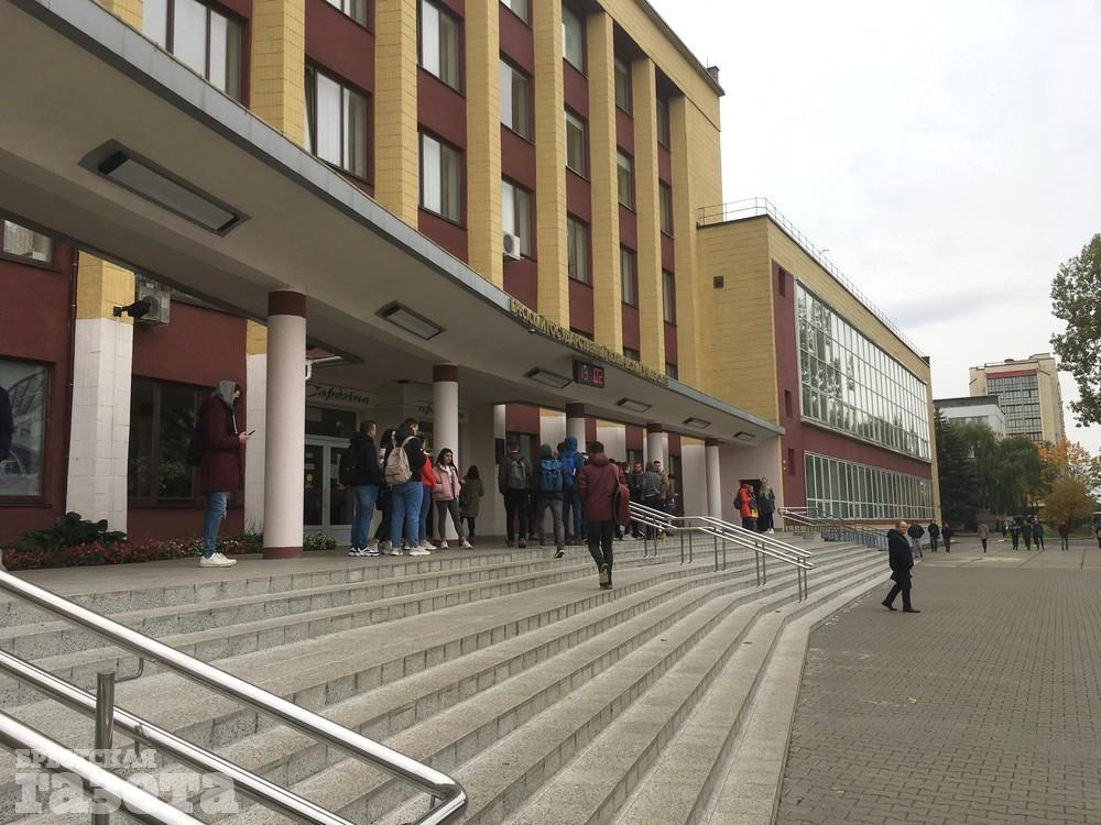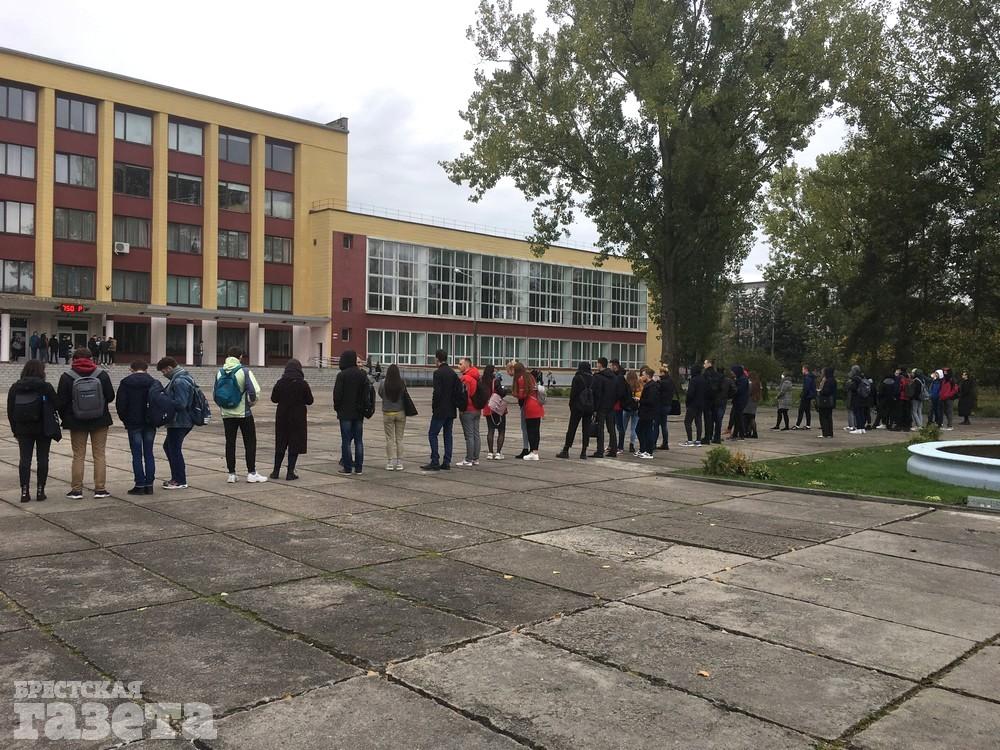 В среду 21 октября студенты Брестского государственного технического университета снова выстроились перед главным корпусом учебного заведения, чтобы выразить поддержку Александру Драгану, которого сняли с должности ректора и заменили выходцем из БНТУ Александром Бахановичем.