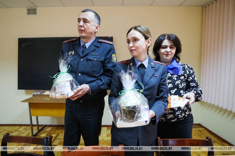 В Бресте милиционеры поздравили украинских беженцев с Пасхой