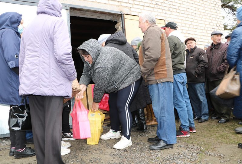 В Ганцевичах выстраиваются огромные очереди за гуманитарной помощью