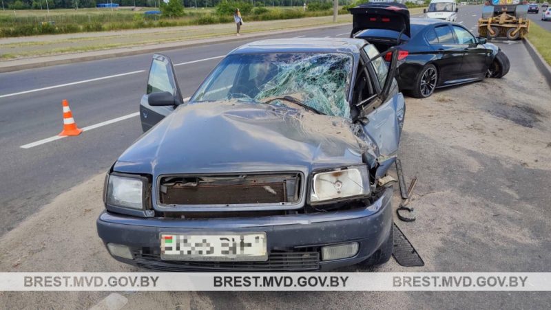 В воскресенье около 14.10 41-летний брестчанин на BMW ехал по улице Октябрьской Революции и, по предварительной информации, на перекрестке с улицей Волгоградской выехал на встречную полосу движения, где врезался в Audi.