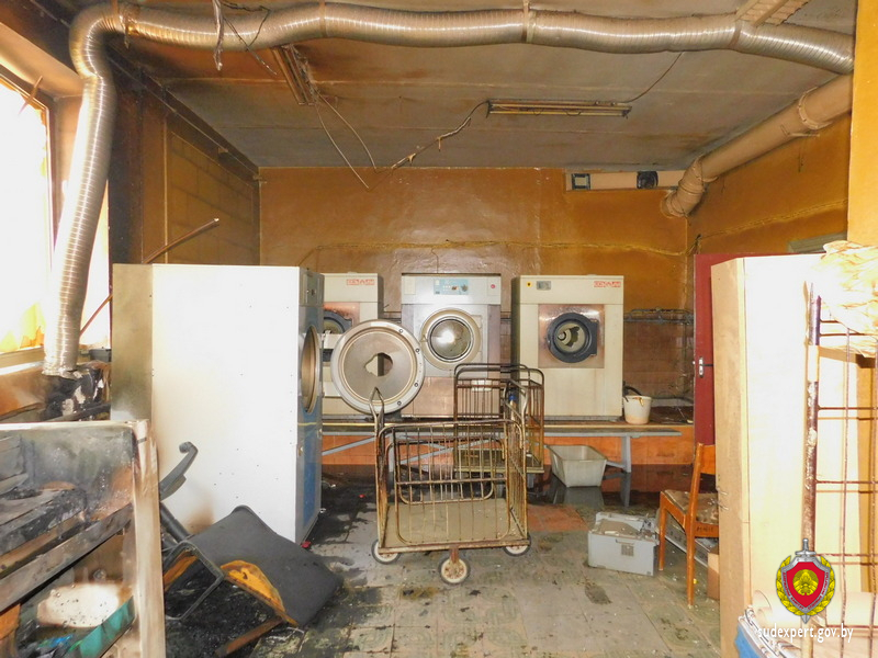 В дежурную часть Кобринского РОВД 14 мая поступило сообщение о пожаре в помещении прачечной. Сотрудники следственно-оперативной группы, прибывшие на место происшествия, обратили внимание на неестественную обстановку в помещении: входная дверь выбита, оборудование прачечной повреждено, белье для стирки разбросано и имело следы термического воздействия. Все это указывало на проникновение в помещение и умышленное повреждение имущества, сообщает ГКСЭ.