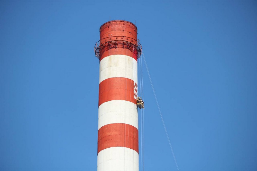 Перекрашивать трубу начали 17 августа. Сейчас там работают промышленные альпинисты.