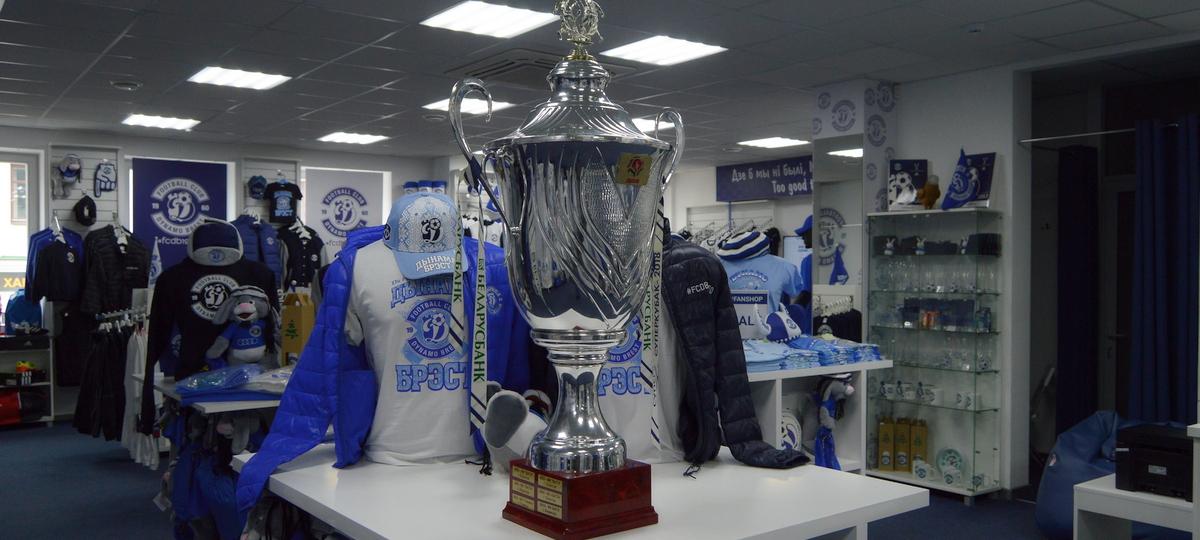 Фотофакт. Суперкубок Беларуси по футболу выставлен в фан-шопе «Динамо-Брест»