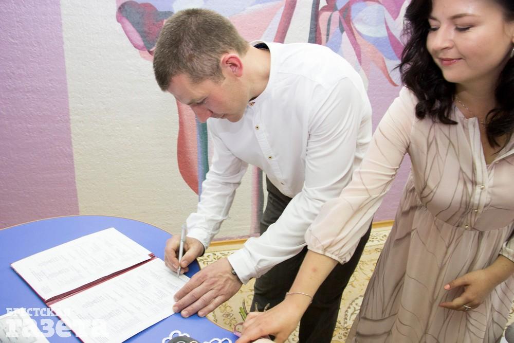 Брестчане Михаил и Ирина Кругликовы познакомились полтора года назад. Он — инженер-проектировщик, она — журналист, редактор отдела новостей «Брестской газеты». Пара расписалась в отделе ЗАГС Брестского горисполкома 1 июня.