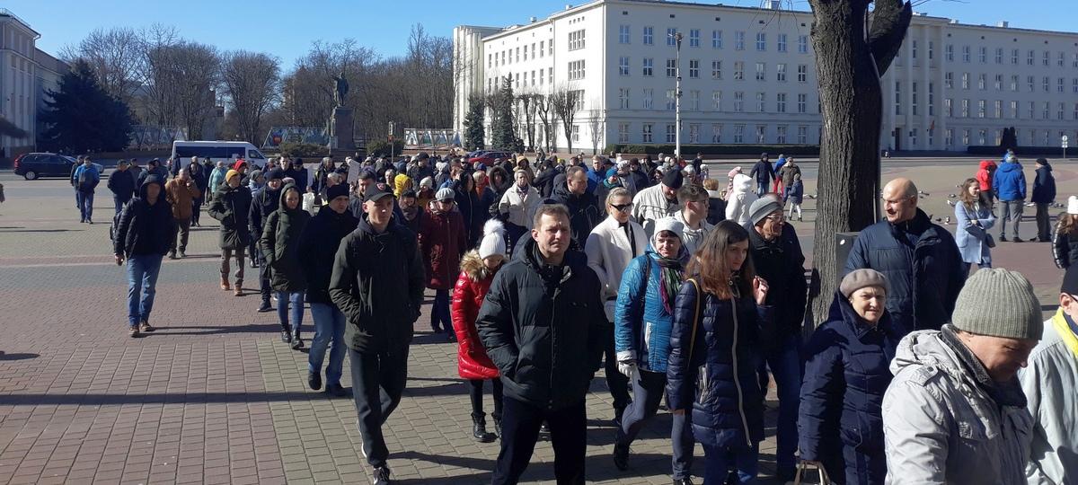 После кормления голубей противники завода по традиции прошли по улицам Пушкинской и Советской к кинотеатру «Беларусь».