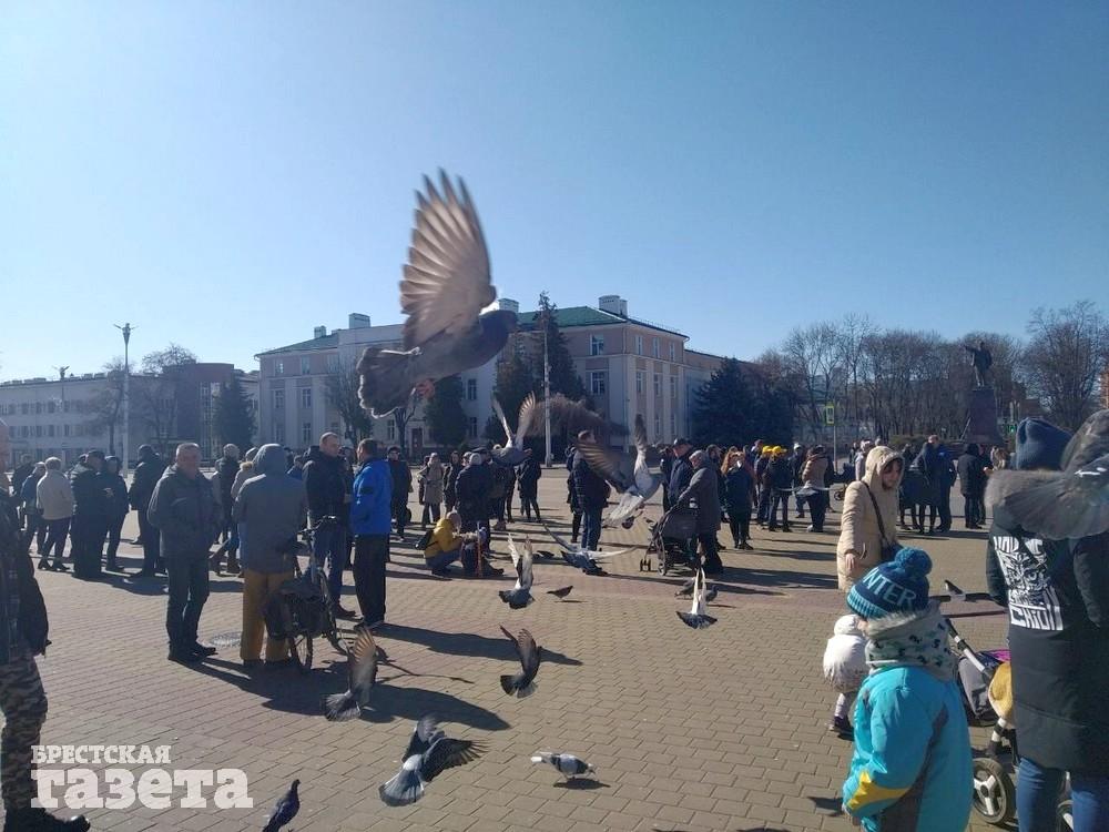 В Бресте продолжаются еженедельные кормления голубей на площади Ленина в знак протеста против аккумуляторного завода «АйПауэр». Днем 15 марта на площадь вышло гораздо больше людей, чем в последнее время – свыше 200 человек. По их мнению, события последних дней доказывают, что завод в ближайшее время хотят запустить.