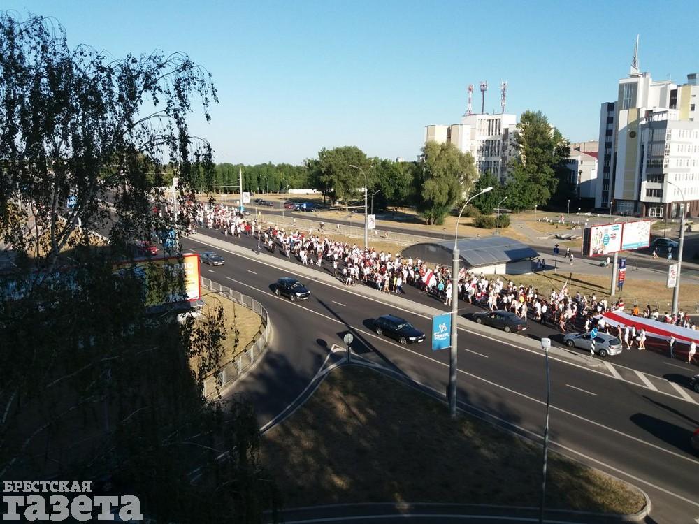 В воскресенье, 16 августа, на площади Ленина в Бресте собралась многотысячная толпа народа, мирно протестующая против результатов выборов и насилия сотрудников правоохранительных органов. После того, как вышедший в 16.00 к брестчанам глава города Александр Рогачук выступил перед собравшимися, они решили пойти к СИЗО и требовать освобождения всех задержанных. Однако там волонтеры попросили не накалять обстановку митингом. Тогда брестчане вышли на проспект Машерова и пошли по проезжей части в сторону Кобринского моста. Судя по всему, они двинулись по вчерашнему маршруту.