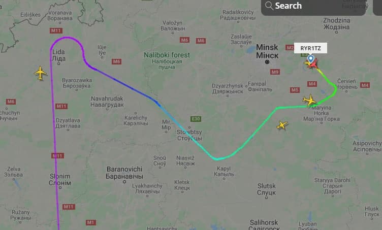 Он находился на борту самолету Ryanair, который летел по маршруту Афины-Вильнюс. В районе Лиды самолет развернулся и сел в Национальном аэропорту «Минск». Якобы причиной стала информация о том, что воздушное судно заминировано.