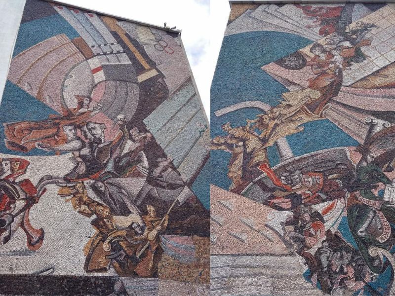Мозаики под названием «Красота спасет мир» были созданы в 1989—1990 годах по госзаказу художником Григорием Кирдеем. Они выходили на городской стадион, теперь же на их месте серая стена.