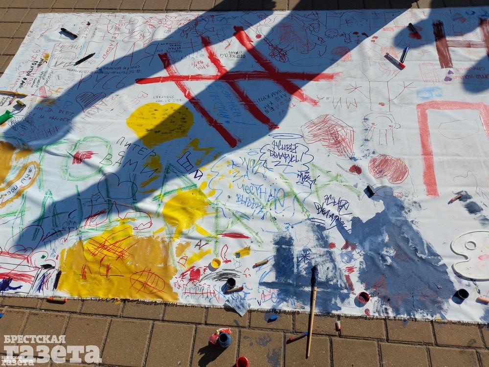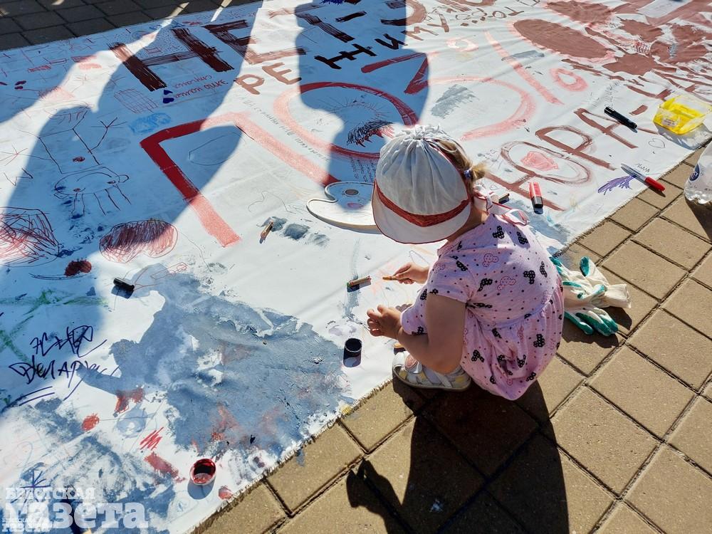 Акция носила исключительно мирный, спокойный характер. Дети и взрослые рисовали большое панно.