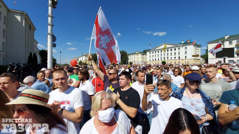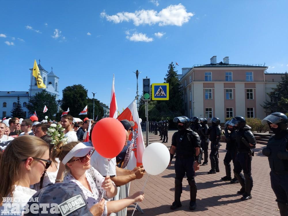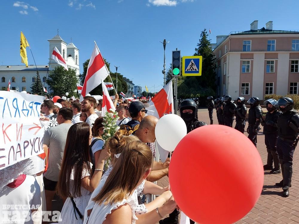 В Бресте 16 августа люди вновь собрались в центре города в знак протеста против официальных итогов выборов.