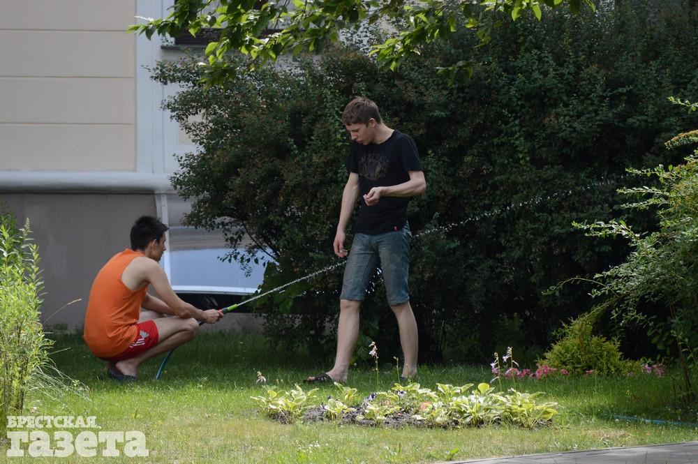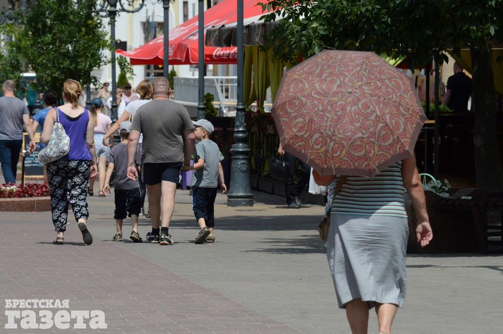 Хорошо, когда пятница, и ты не на работеСоломенная шляпа — не только для пляжа, но и в городеЧем заняться на пляже? Почитать, конечно же!Видимо, прецедентов хватает!По словам спасателей ОСВОД на Центральном пляже со стороны города в выходные собирается до 800 человекЧтобы не задохнуться в машине, периодически приходится проветриватьВ будние дни на пляже в два раза меньше, чем в выходные — около 300 — 400 человекГолову прикрывать обязательно. И не важно чемГоворят, так лучше загар ложитьсяА кто-то в прячется в тени деревьев на набережнойНа пляже на противоположном берегу Мухавца тоже немало людейПрокатиться с ветерком — самое то в такой знойЗонтик для коляски?И, конечно же, мороженое…Модницы могут выгулять шляпыА рыбаки прячутся в тениРабочим приходится не сладко. Зато загар классный!Молодежь уже облюбовала Городской сад. Там много тенька от деревьевПоливать растения в такую жару просто необходимоА если бутылку воды с собой не взял, то можно попить из колонкиРядом с водой, наверное, прохладноТе, кто посмелее, оголяются, как могут.А другие — кутаются от солнцаПо окнам сразу видно, где нет кондиционеровА вместо веера можно использовать любые подручные средстваЧтобы салон не нагревался, лобовое стекло лучше бы прикрытьА пить надо в любую удобную и неудобную минуту. Даже на ходуНу и, конечно же, в такую жару стирка высыхает за считанные минуты