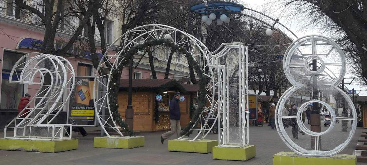 Самое дорогое украшение — «Новогодний подарок». Это огромный куб с изогнутыми гранями и двумя сквозными проходами. Внутри «подарка» будут установлены декоративные лавки белого цвета, сверху конструкцию увенчает бант. Она будет светиться тремя цветами.