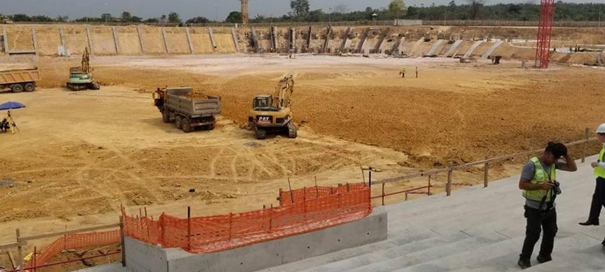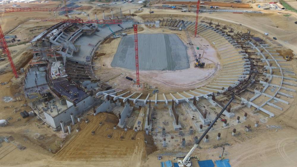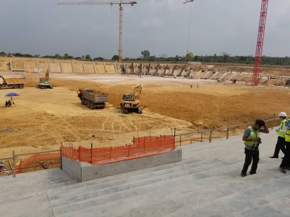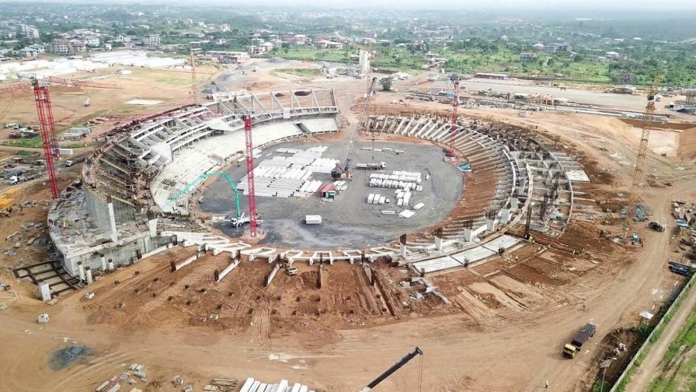 А эти фотографии — съемка строительства стадиона в Камеруне!