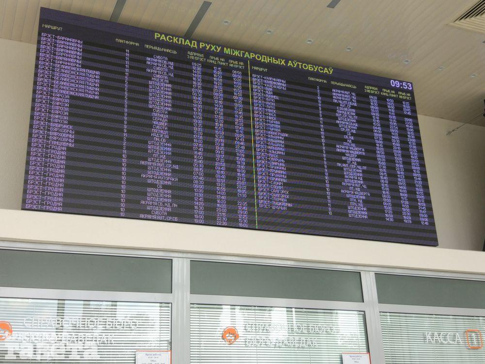 Информационные стенды и вывески на новом автовокзале в Бресте оформлены на русском, английском языках и, как и обещали, на белорусском. Объявления также озвучиваются на трех языках. Сама надпись на здании также на белорусском языке — «Аўтавакзал Брэст».