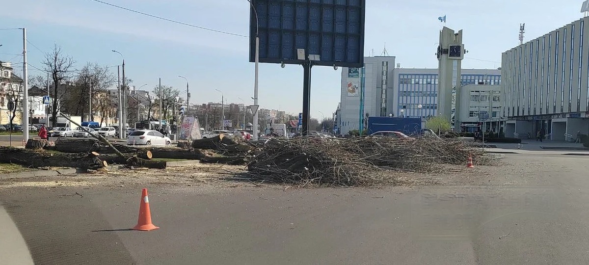 В Бресте на проспекте Машерова, на участке между ЦУМом и гостиницей «Интурист», спилили деревья. Фотографии в соцсетях опубликовали неравнодушные брестчане.