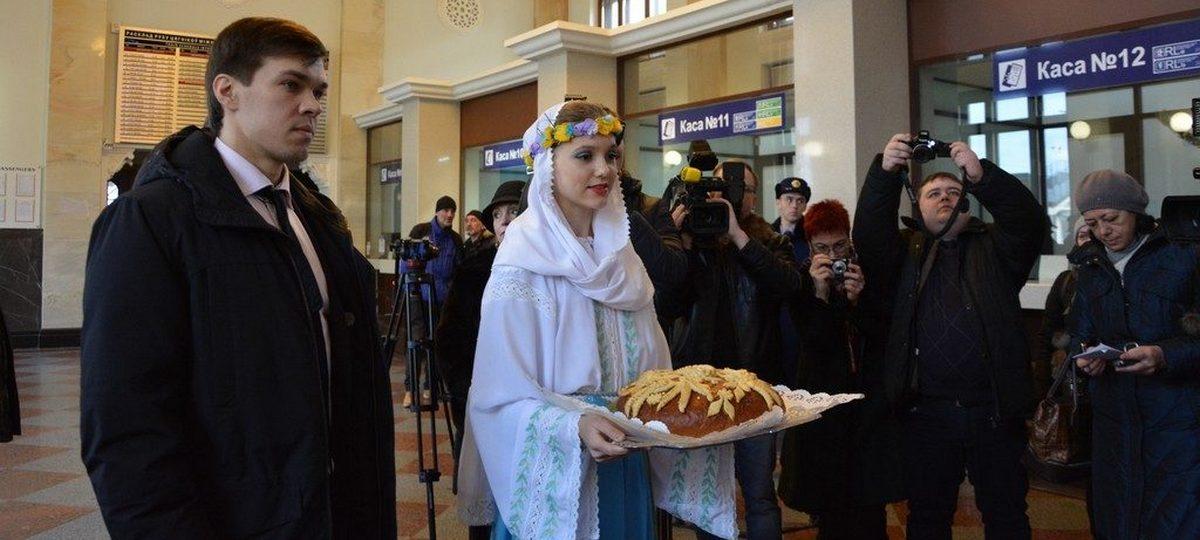 На железнодорожном вокзале Брест-Центральный гостей встретили представители местных органов власти. Зампредседателя горисполкома Сергей Жуков подарил туристам альбом о достопримечательностях Бреста, сообщает БелТА.