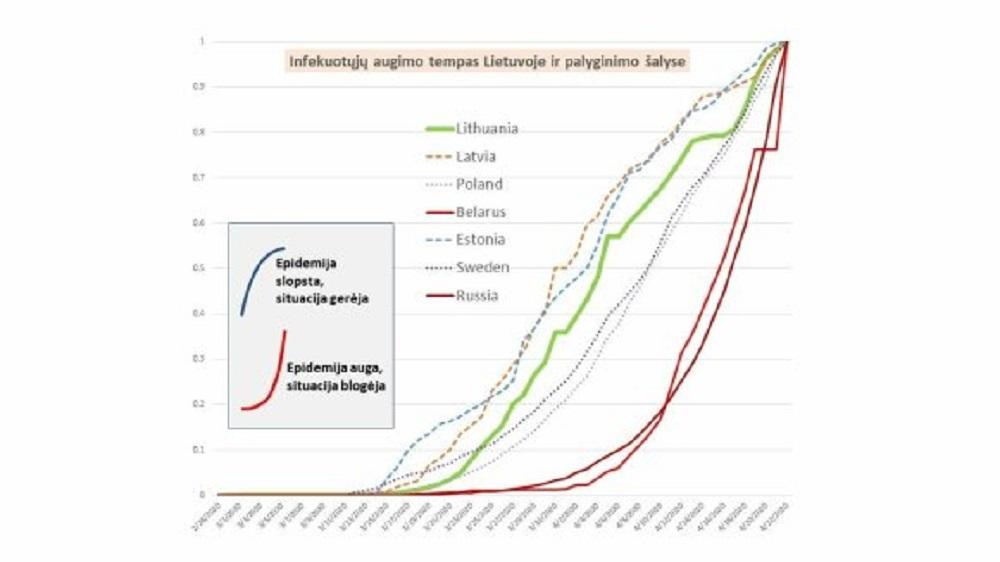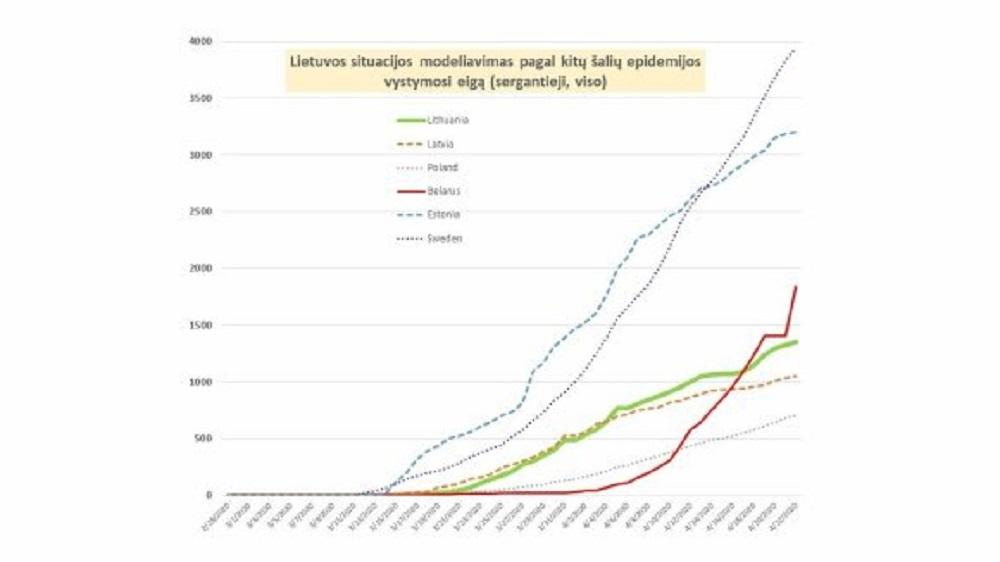Также исследователи сравнили распространение эпидемии с соседними странами. При польском или латышском сценарии количество смертей в Литве было бы немного ниже, а при эстонском – выше. Если бы в Литве действовали такие же меры как в Беларуси, то в день фиксировалось бы 110-190 новых случаев заболевания коронавирусом. Шведский вариант в Литве обернулся бы сложной ситуацией – 4 000 больных и около 420 случаев смерти от COVID-19.