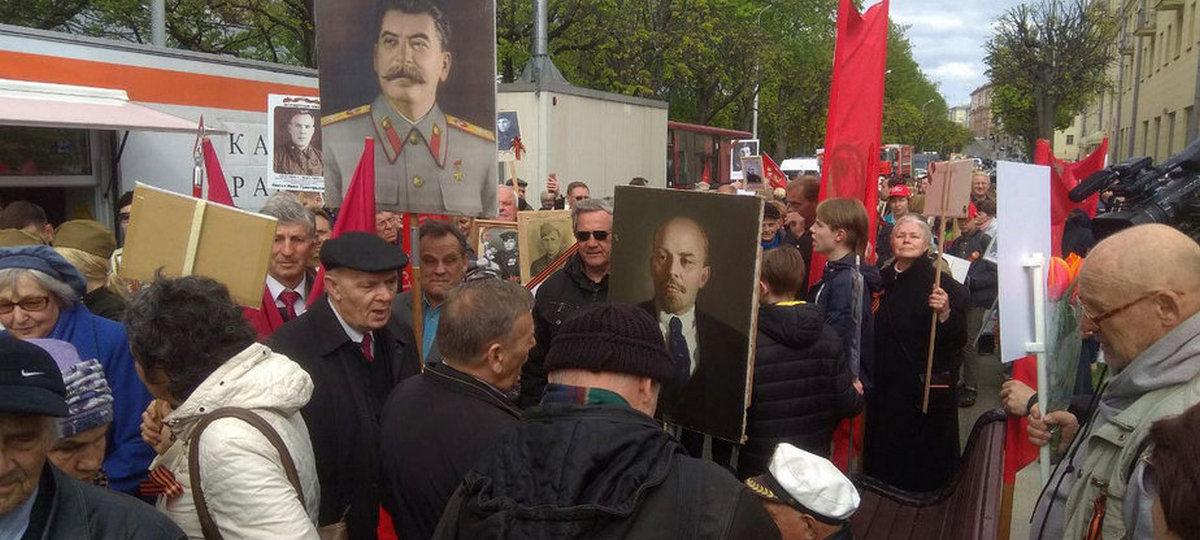 У некоторых участников «Бессмертного полка» на груди были георгиевские ленты. Другие принесли флажки белорусских государственных цветов. Многие из пришедших держали портреты советского диктатора Иосифа Сталина.