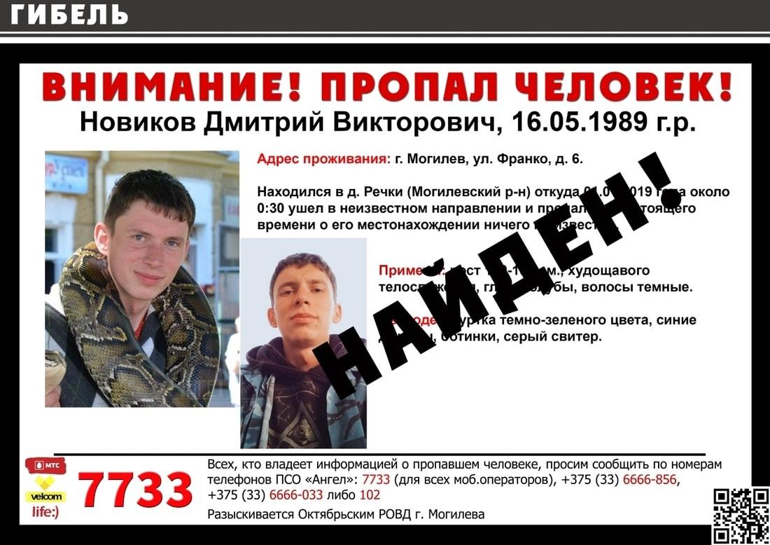 А вот поиски 29-летнего могилевчанина Дмитрия Новикова, пропавшего 1 января, завершены. Труп без видимых признаков насильственной смерти был обнаружен в нежилом доме в агрогородке Речки Могилевского района, пишет «СБ. Беларусь сегодня».