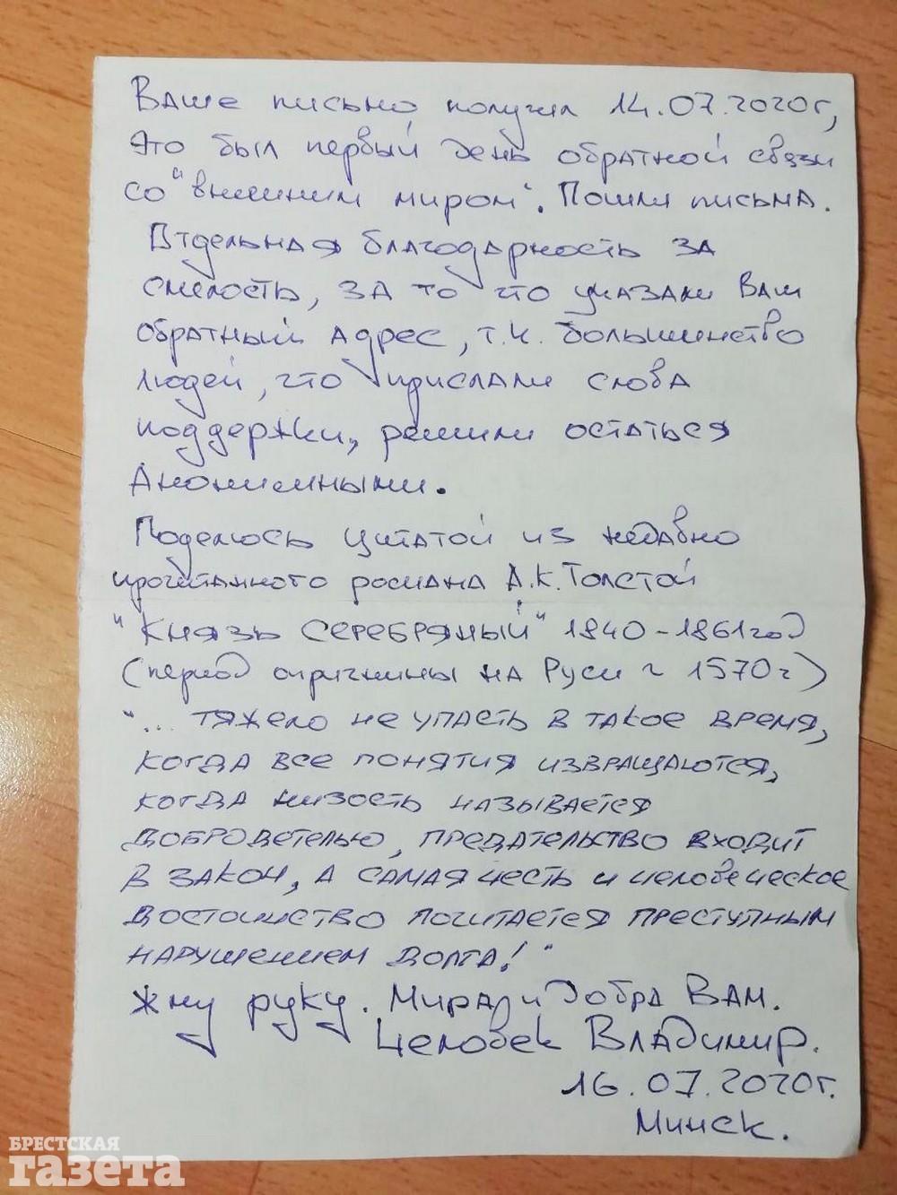 Блогер благодарит брестчанина за смелость, за то, что указал обратный адрес, т. к. большинство людей, которые прислали слова поддержки, решили остаться анонимными.