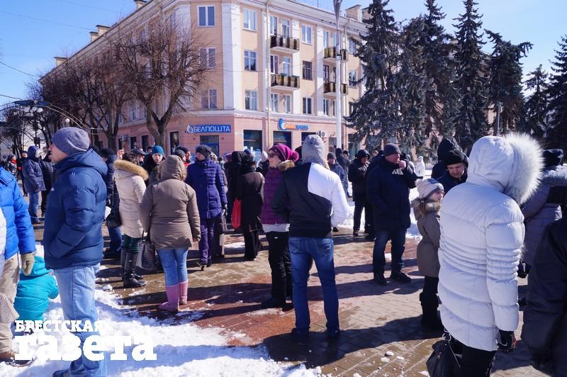 В полдень 18 марта на площади Ленина собрались противники появления в СЭЗ «Брест» аккумуляторного завода «АйПауэр». Несмотря на морозную погоду, покормить голубей пришли по разным оценкам от 150 до 200 человек. Это больше, чем было в предыдущие воскресенья. Кроме того, в этот раз люди были настроены по-другому: смелее, решительнее. Противники завода спели песню «Жить», которая накануне появилась на ютубе, и проскандировали «Нет заводу!»