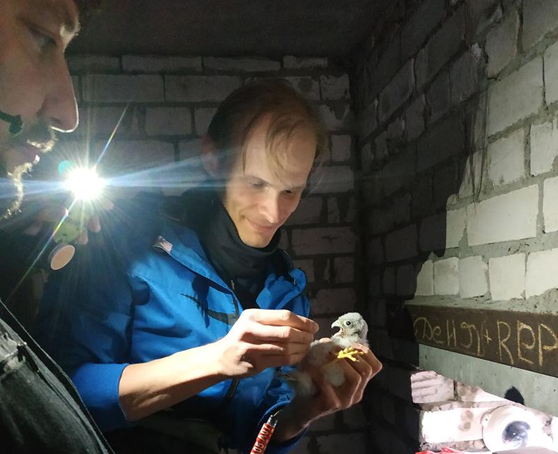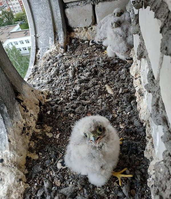 Через несколько недель подросшие соколята начнут выпадать из своих гнезд. Многочисленные ниши, которые занимает пустельга в Бресте, не предназначены для этой птицы.