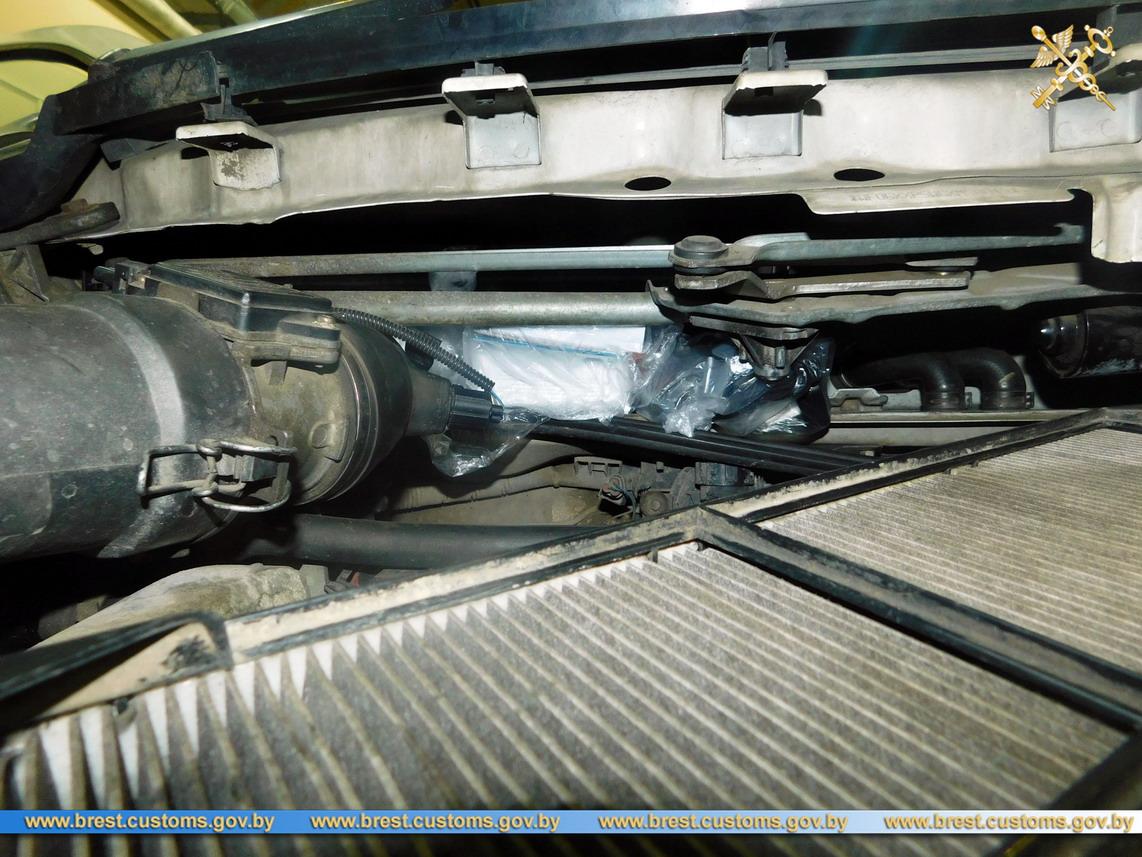В результате последующего досмотра транспортного средства в конструктивной полости под капотом обнаружен новый фотоаппарат Sony стоимостью 1 100 евро.