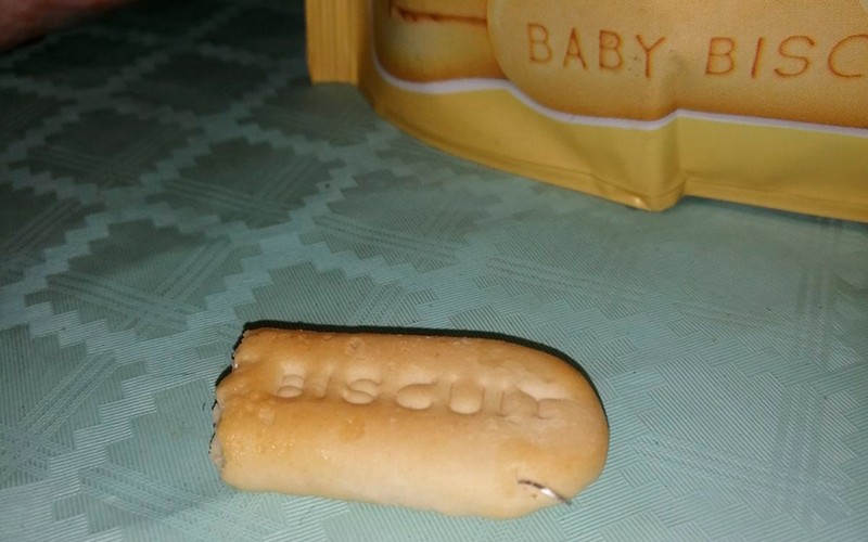 «Хотелось бы поделиться с вами и с читателями своей ужасной историей. 10 ноября приобрела детское печенье «Лапушка» кондитерской фабрики «Слодыч» для детей с шести месяцев в магазине «Мартин» на улице Кирова. Моему ребенку девять месяцев. Достав печенье из упаковки, хотела дать малышу в руку уже не первую печенюшку, но, присмотревшись, увидела проволоку внутри печенья!» — рассказала читательница издания.