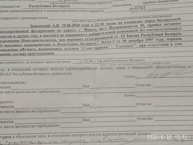 Затем Виталия затащили в автомобиль и увезли в райотдел милиции, а потом поместили в ИВС. Суд над ним состоялся 22 июня. Виталию за «нарушение порядка организации массовых мероприятий и неповиновение милиции» дали штраф в четыре базовые величины – 108 рублей.