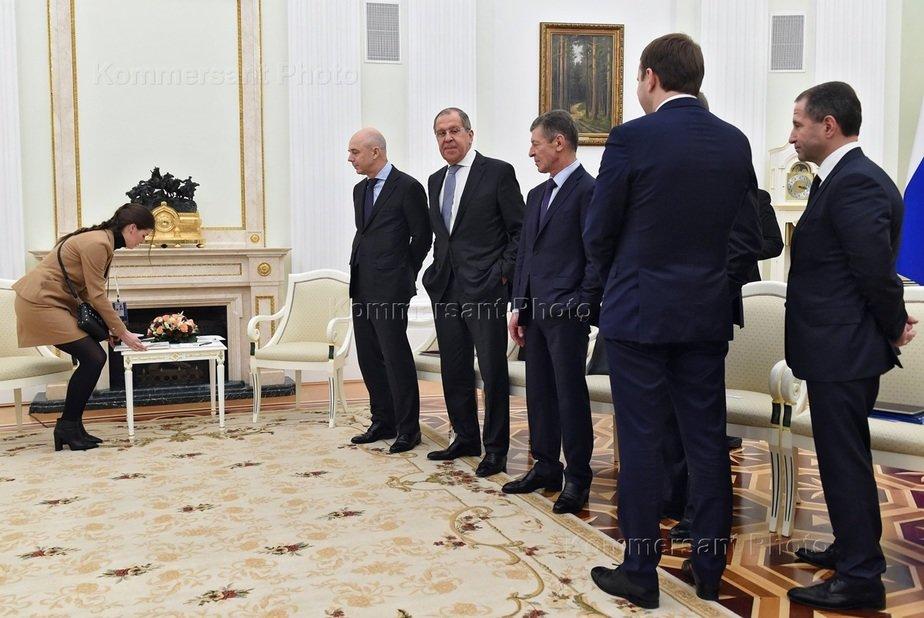 Когда полностью сформировался пул членов российской делегации во главе с Сергеем Лавровым и когда подошли белорусские переговорщики, к столику, за которым должен был сидеть Александр Лукашенко, подошла его молодая помощница: то ли чтобы поменять ручку, то ли чтобы, по более поздним версиям, положить бумаги. Но да, юбка, конечно, была коротковата… Или оказалась…