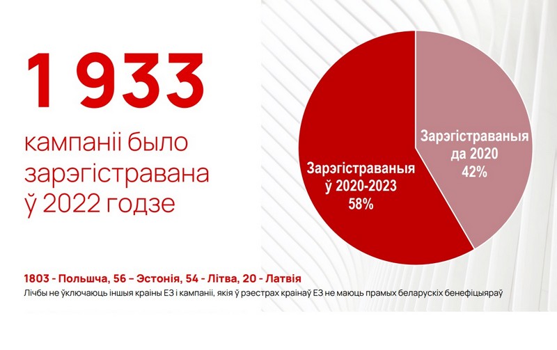 58% из них, или почти 4,7 тысячи, были зарегистрированы после 2020 года. Активнее всего беларусы регистрировали бизнес в Европе в 2022 году, тогда было открыто 1 933 фирмы в Польше, Эстонии, Литве и Латвии.