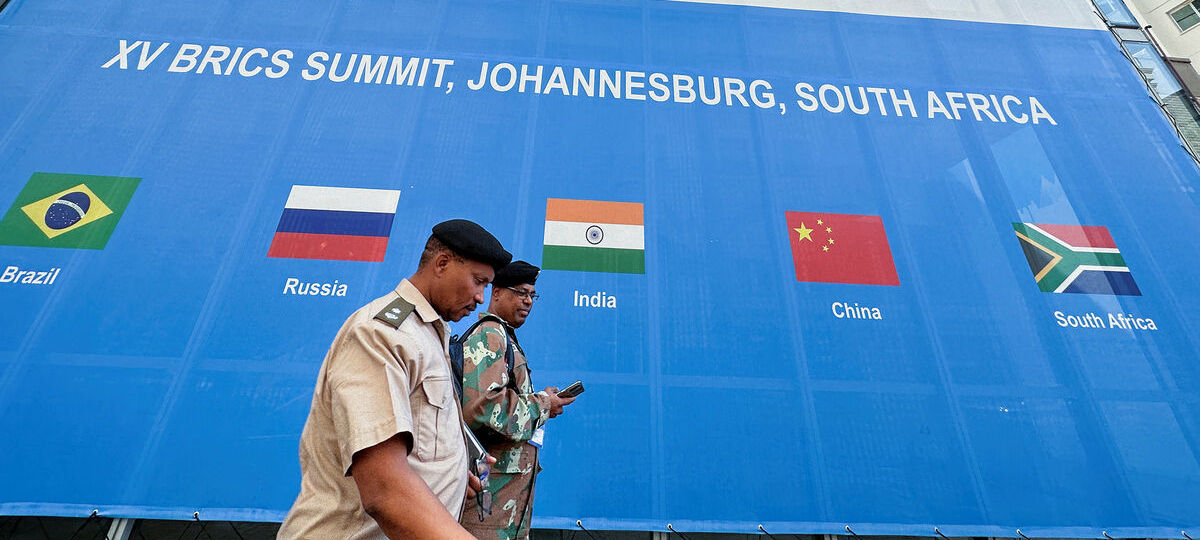 Беларуская делегация во главе с министром иностранных дел Беларуси Сергеем Алейником принимает участие в саммите БРИКС (группа из пяти стран: Бразилия, Россия, Индия, Китай, ЮАР) в ЮАР. Это тот самый саммит, от поездки на который пришлось отказаться Путину из-за ордера на арест, выданного Международным уголовным судом. Российский президент выступил на саммите по видеосвязи. Лукашенко также не поехал — здесь можно жонглировать догадками про солидарность со «старшим братом» или предосторожность раньше времени, ведь Лукашенко грозит такой же ордер.
