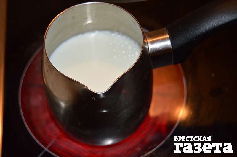Готовим: Молоко налейте в кастрюльку и поставьте на плиту.