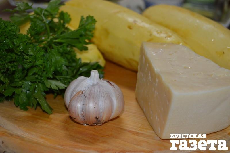 Надо: 5 маленьких кабачков, 100 г сыра, пучок петрушки, 3 зубчика чеснока, соль, перец по вкусу.